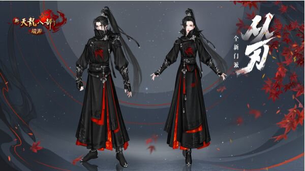 門派服裝設計通身以黑色為主,島上標誌著堅毅與珍惜的漫山火紅楓葉繡於衣角處,兩色相得益彰,明羽翩躚,悠然棲身。作為從刃門人特製的錦服,有著島內獨有的異香。