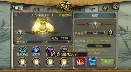 女人工作会愈加飘逸轻盈,再搭配天龙的百变时装,你必定会成为人群中最抢眼的那个!除了炫酷外观,神翼关于战力的影响也是巨大的,经过重重破境,能够让战力飙升!